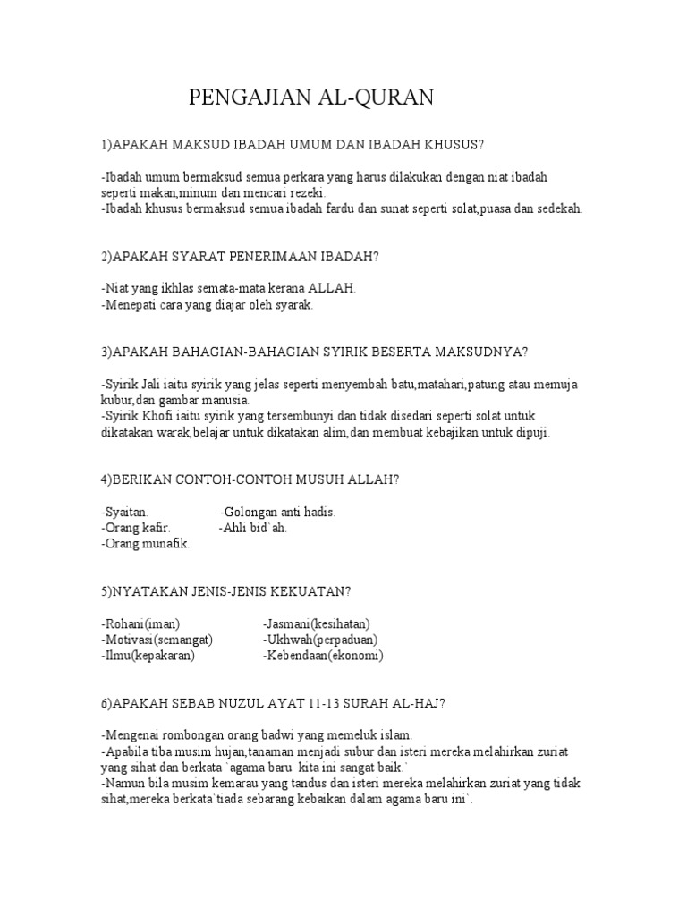 Contoh Soalan Al Quran Dan Sunnah Tingkatan 4